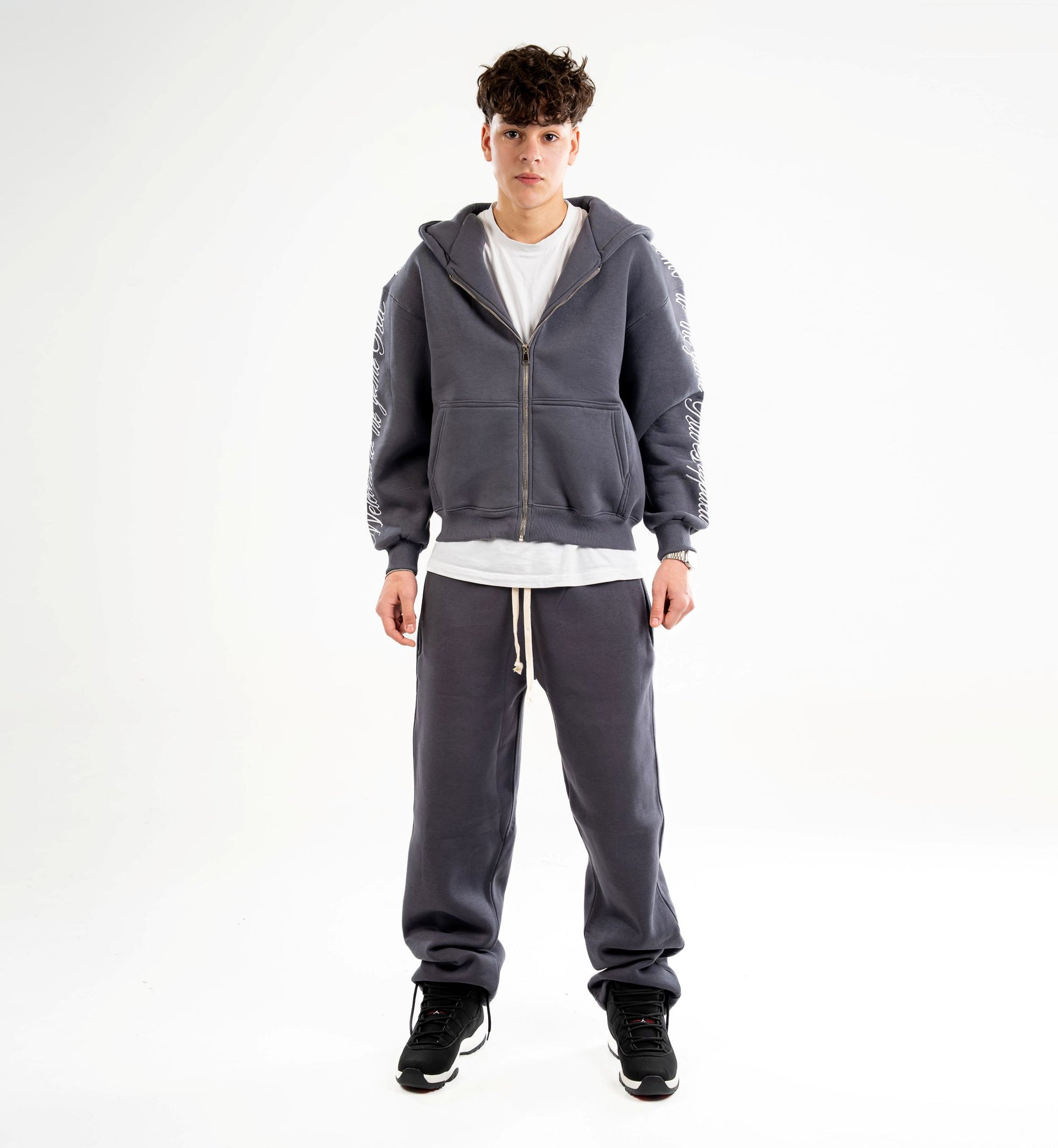 Charcoal Embroidered Zip-UP